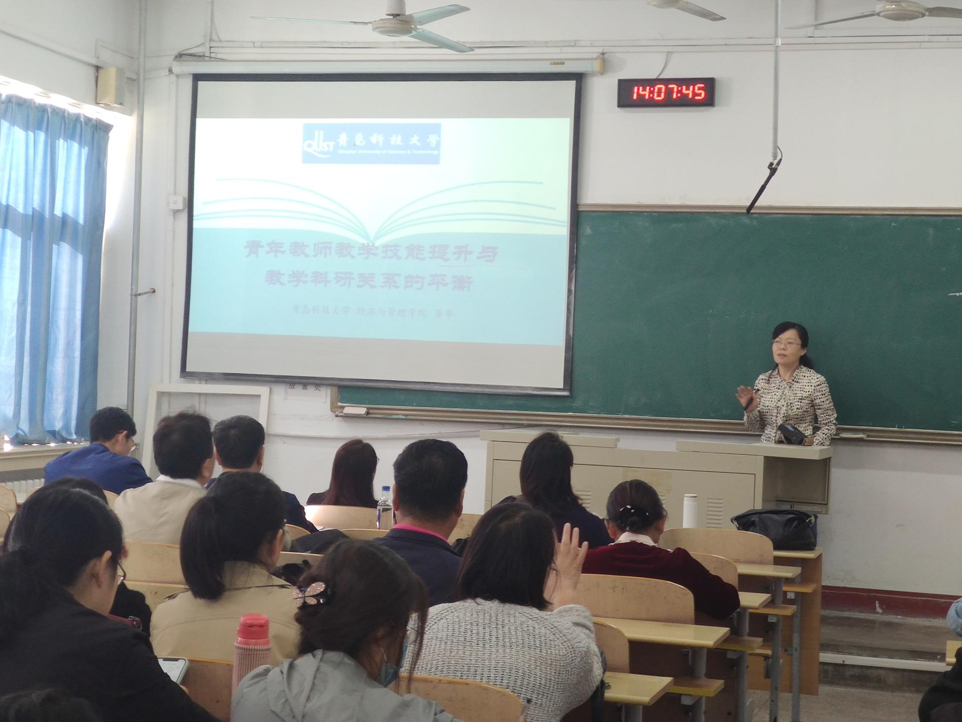 为进一步深化实化师德师风建设,提高我院青年教师教学科研双向发展和教学项目申报的水平,10月12日下午,学院邀请省级教学名师董华教授作了题为《青年教师教学技能提升与教学科研关系的平衡》专题报告,专题报告会在一教201举行。必赢线路检测中心党总支书记周宪峰、院长马翠萍及各系主任、骨干教师等出席了会议。会议由副院长李昉主持。