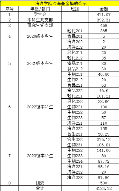 截至11月6日共收到捐款合计4134.13元,以下为捐赠明细: