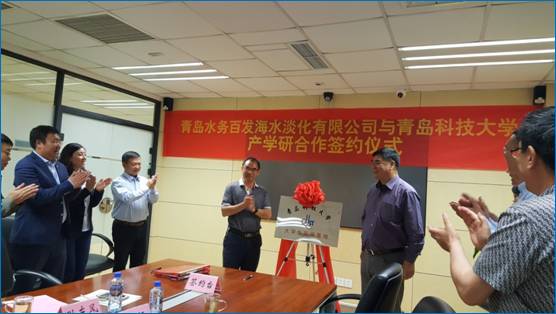 2017年5月18日下午我院与青岛水务海润自来水集团公司在青岛百发海水淡化有限公司签订产学研合作协议。青岛科技大学我院院长陈夫山和青岛水务海润自来水集团公司总经理孙东风在会上发言并在协议书上签字。青岛市城市管理局副局长孙炜出席并讲话。出席签字仪式的还有青岛科技大学我院副院长范金石、生物质资源系系主任张恒、青岛百发海水淡化公司总经理张晓东、青岛海润自来水集团公司综合部部长吕思东和青岛百发海水淡化公司行政部经理张海艳等领导。签字仪式后双方代表参观了青岛百发海水淡化厂。