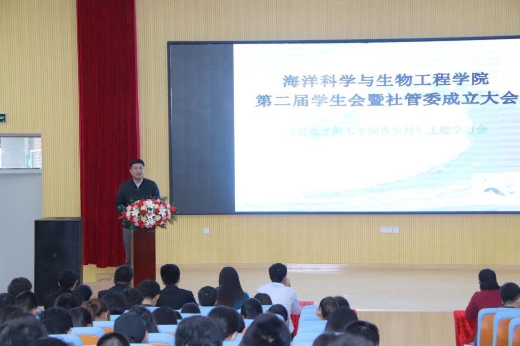 10月17日下午,我院第二届学生会换届暨社管委成立大会在四方校区讲学厅隆重举行。学院党总支副书记兼副院长卢中彬、分团委副书记王祥梅、学生会秘书长杜宗杰、全体专兼职辅导员,四方校区学生会副主席于洲、社团联主席陈玉全,我院全体学生干部及兄弟学院学生会代表200余人参加本次大会。