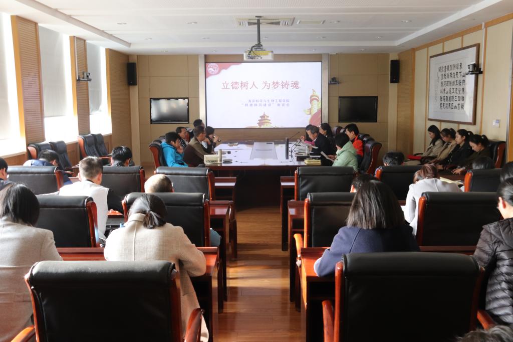 百年大计,教育为本;教书育人,师德为先。为贯彻落实《教育部关于全面落实研究生导师立德树人职责的意见》文件精神,积极响应学校开展的第十七届师德建设月活动要求,引导海院教师立德树人、为人师表,11月20号下午1:30,我院在一号行政楼第一会议室召开了“立德树人,为梦铸魂”师风师德建设座谈会。