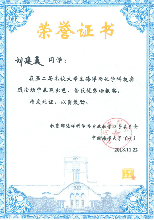 近日,由教育部海洋科学类专业教学指导委员会主办的第二届高校大学生海洋与化学科技实践论坛在中国海洋大学举行。浙江大学、中山大学,厦门大学、山东大学、青岛科技大学等19所高校的代表队伍参加了本次论坛,最终有17个报告和37个墙报进入决赛,青岛科技大学必赢线路检测中心代表队分别获得优秀报告一等奖和优秀墙报奖。