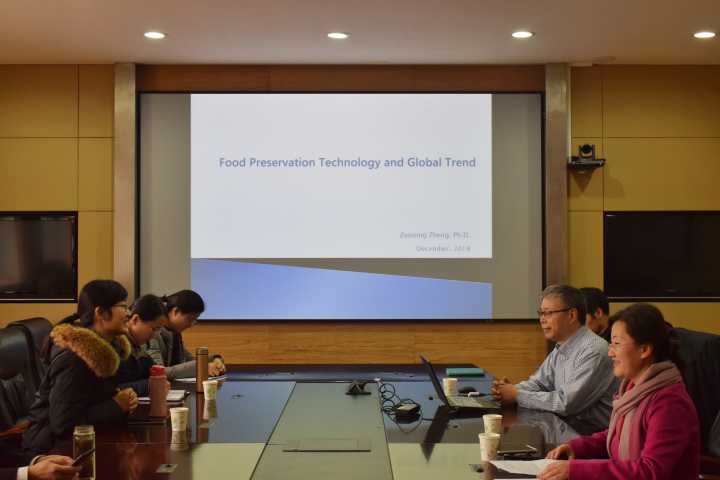 在学术报告会开始前,我院硕士生导师解万翠教授向与会人员介绍了郑佐兴教授的基本信息。郑佐兴教授在美国麻省大学取得博士学位,是美国卡夫食品公司首席科学家,主攻食品微生物学与食品安全。郑教授曾任美国食品学会食品服务分会主席、华美食品学会执行委员会主任委员、北美华人食品安全协会秘书长,是Biotech. Progress, Process Biochem., Food Res. Intl, 等多项国际学术期刊的同行评议人,多次获得卡夫食品公司各类奖项。同时,郑教授的简历已列入Marquis 世界名人录,美国名人录,科学与工程界名人录。