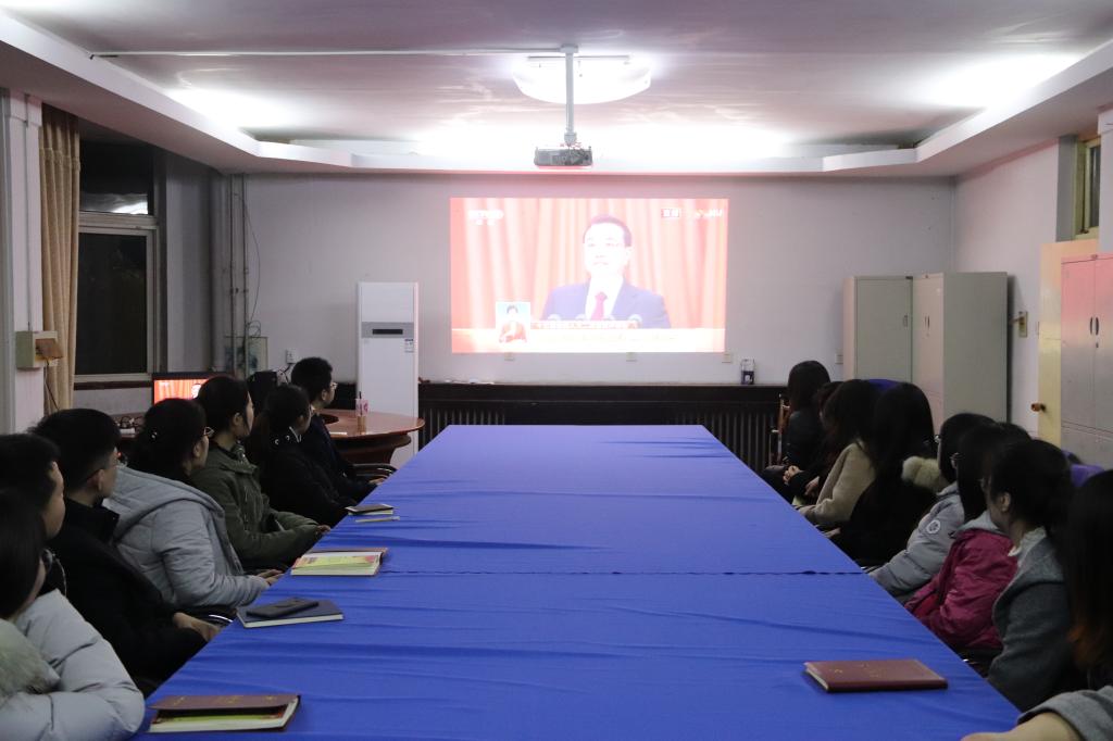 在本次学习活动中,师生们观看了第十三届全国人民代表大会第二次会议开幕式,跟随会议回顾了2018年以习近平同志为核心的党中央引领改革开放纪实,见证了我国一年来发展取得的重大进展;了解了2019年经济发展总体要求和政策取向及政府工作任务,扎实打好三大攻坚战,深化经济体制改革,助力乡村振兴,坚持改革开放。