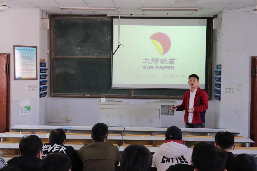 习近平总书记指出,国家发展靠人才,民族振兴靠人才,人才是兴国之本,富民之基,发展之源。2019年人才渴求度进一步提高。正值毕业季,人才济济,多方公司的招聘会如火如荼地进行。3月22日,山东世纪阳光纸业集团有限公司、山东太阳纸业股份有限公司、汇胜集团等公司在我院进行招聘宣讲会。