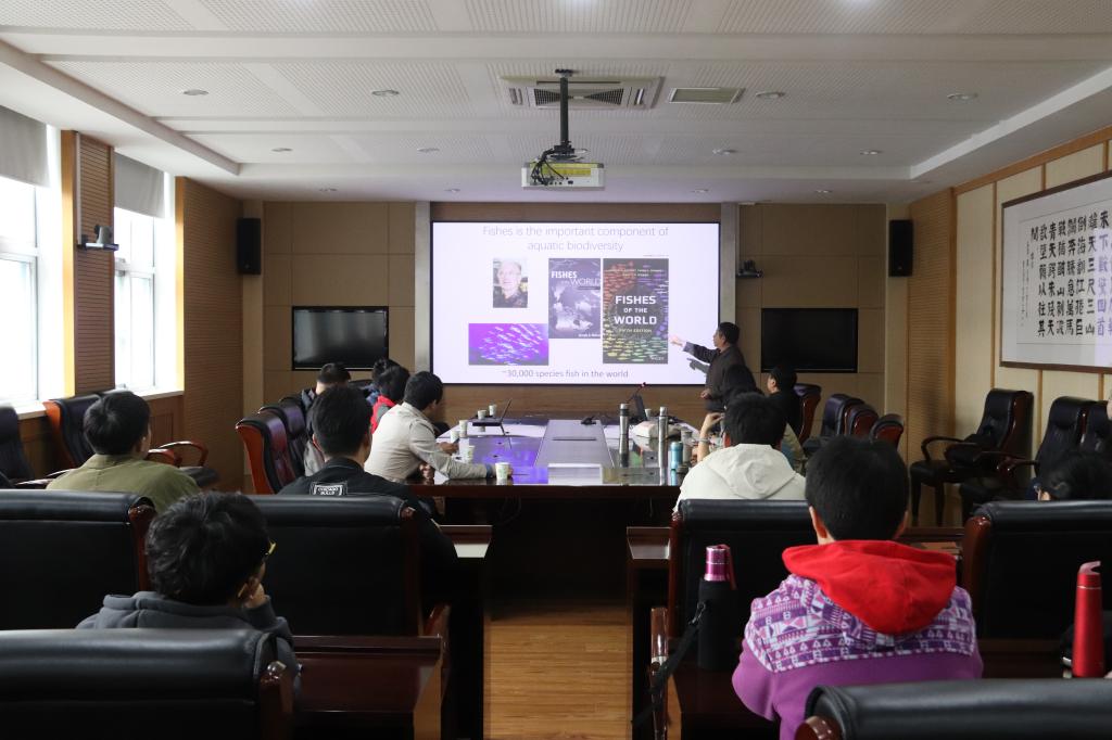 随后,中国科学院深海科学与技术研究所的博士研究员何舜平做题为《低等脊椎动物基因组多样性与适应性进化》的学术报告,以图表与论文相结合的方式,阐叙了环境会对基因造成影响,并指出新基因对物种进行具有重要意义。青岛华大基因研究院副院长范广益老师做题为《Earth Biogenome Project: Sequencing Life for Future of Life》的学术报告。介绍了神经系统的演化,讲解了动物的再生机制、鱼类的进化与动植物的水生适应性,揭示了基因序列与DNA的多样性。