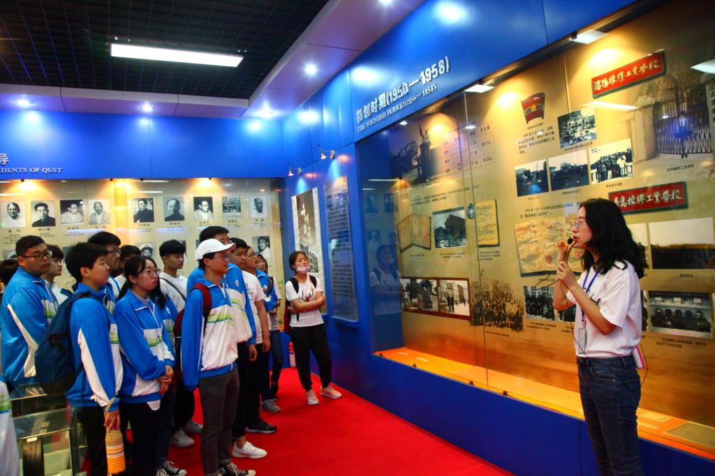 一幅幅老照片阐述着青科大的往昔, 让同学们深刻的感受到了母校所获得的各项成就与先辈们数代人的共同努力密不可分。在回顾学校往昔之后,同学们在讲解员的带领下共同展望学校未来,了解到学校 “三步走”发展战略,学校致力于实现“中国一流大学、世界一流学科”的建设目标。