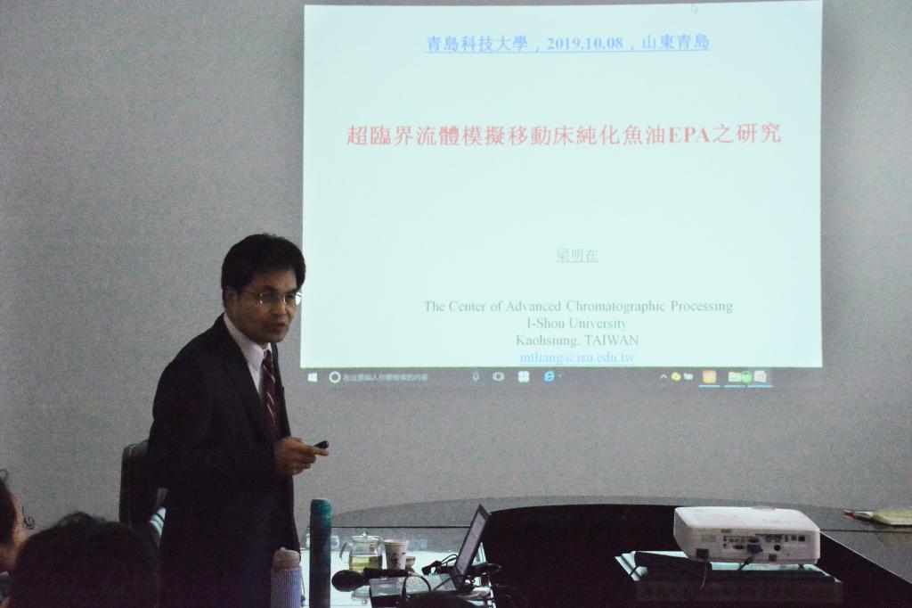 学术交流会上,梁教授围绕“超临界流体”和“鱼油深度提取”进行两个课题展。梁教授提到,近30年来,超临界流体萃取技术引起人们的极大兴趣,这项化工新技术被在化学反应和分离提纯领域开展了深入研究,在医药、化工、食品及环保领域成果累累。在有关鱼油提取方面,他解释说,鱼油因含有较多的功能性脂肪酸而被人们大量需要,因此鱼油提取技术在台湾的发展前景良好,由此梁教授着重提出“技术支撑市场”这个理念。在交流会中,教授采用图片与文字相结合的方式,寓教于乐,现场形成了浓厚的学术氛围。最后,梁教授与海院师生进行了超临界流体领域和鱼油提取技术相关问题的讨论交流,让学院老师及同学们在知识、精神领域都受益匪浅。