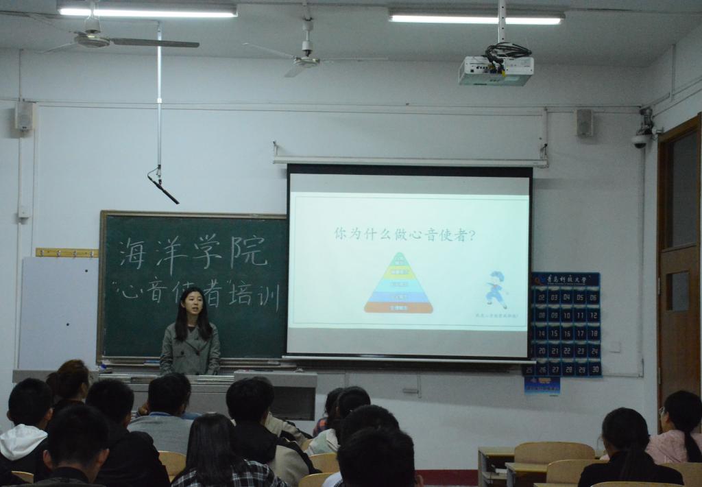 10月20日晚6:00,我院于四方校区二教104室开展了“心音使者”培训讲座,旨在让学院“心音使者”了解心理健康的基本知识以及他们能够辅助辅导员做的心理健康方面的工作。本次讲座由学院2019级辅导员刘璐担任主讲人,全体新生舍长参与了本次培训。