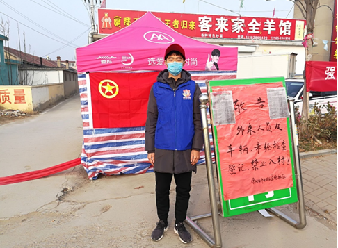 在学习了王征学长志愿前线的优秀事迹后,王嘉乐深受感动,向社区表达志愿申请,通过社区领导的协调帮助,在保证防护安全的情况下到值班岗上为居民服务。在值班过程中他谈了自己的感受,他说:“我正式上岗的第一天,其实社区内的党员干部已经在工作岗位上工作了数日,从他们身上,我看到了党员干部冲锋在前、恪尽职守、无惧疫情、敢为人先的勇气与魄力;在各级防疫人员的共同努力下,人们整体防控意识明显增强。无论是社区内居民还是外来人员体都自觉主动地配合值班人员的检查、消毒工作,助力科学防疫,共迎春暖花开;长时间的佩戴口罩在晚上回家的时耳朵会产生一些酸痛感让我更加体会到前线医务工作者的艰辛与不易,再次向他们致敬!”他还表示,随着开学的延期,社区里之后如果还有需要也会继续志愿服务,向优秀的学长学姐学习,发扬学院所提倡的奉献精神。