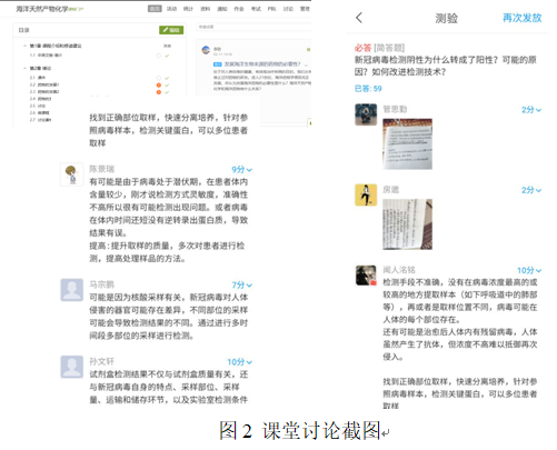 目前的疫情牵动着每个华人的心,“病毒”、“检测”、“药物”、“疫苗”这些与我教授的课程都有着密切的关系。下载了与新冠病毒研究相关的最新的文献六篇,相关文献近30篇,精心挑选出6篇,与学生共同学习。并针对不同年级学生的学情,分别设计了“生命的分子本质”和“海洋药物”等讨论题目。引导学生在学习科学的研究方法的同时,要更有科研工作的责任感,自觉服务人类、造福社会。