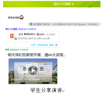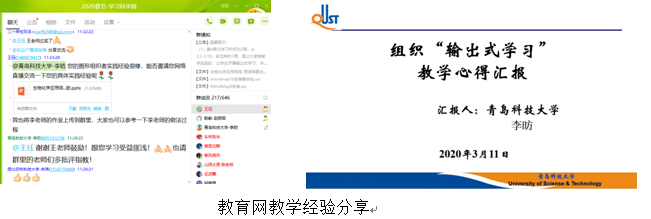 及时提醒学生查看发布的作业和任务,按时完成,在截止日期前完成自评和互评。对于学生的作业进行批阅,发现有些学生尤其是低年级学生,自学能力还有待培养,而有些学生对学习有更高的需求,针对不同的学生实际情况,通过QQ、微信私聊给予学生必要的指导和帮助。我还开展“输出式学习”,让学生以团队的形式完成研究,形成研究报告,学生自评,组间互评,既可以提高学生的学习自觉性又有利于培养团队协作的精神。作业任务同时具有很大的研究空间,有利于提高课程的高阶性、创新性和挑战度。单独指导学生做分享课件,在课堂分享学习经验。该做法得到K12教育网主编王珏老师的肯定,并在“基于学习科学的高效教与学方法”的网课班级里进行经验分享。
