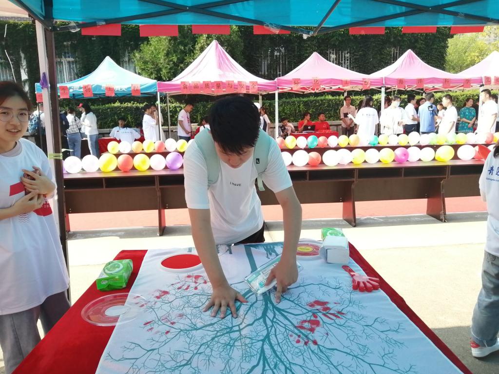 我院突出学校七十年校庆,制作校史校情海报及学院简介,组织2020级新生提前学习校史、校情、校歌,新生在迎新现场中合唱《青春校园》校歌,并在背景展板上印上自己的手印,切实增强2020级新生对科大人的身份认同、情感认同、价值认同。