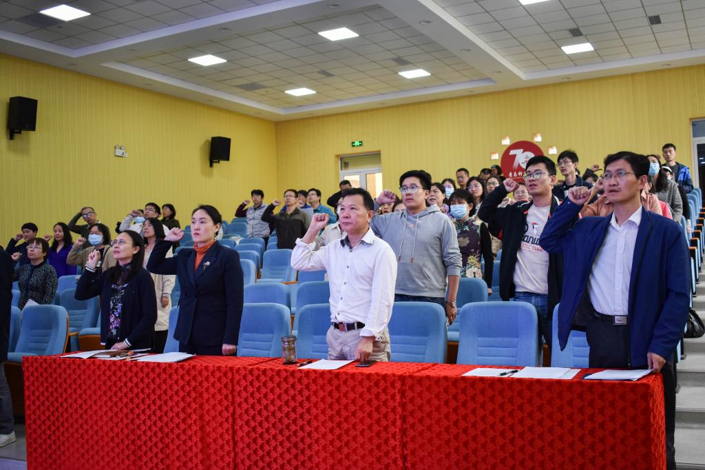 副院长王新萍领学了《新时代高校教师职业行为十项准则》和《教育部关于高校教师师德失范行为处理的指导意见》;生物工程系王硕教授领誓,与会教师庄严宣读“人民教师誓词”;全体教师签订“我是人民老师,我向祖国承诺”承诺书。
