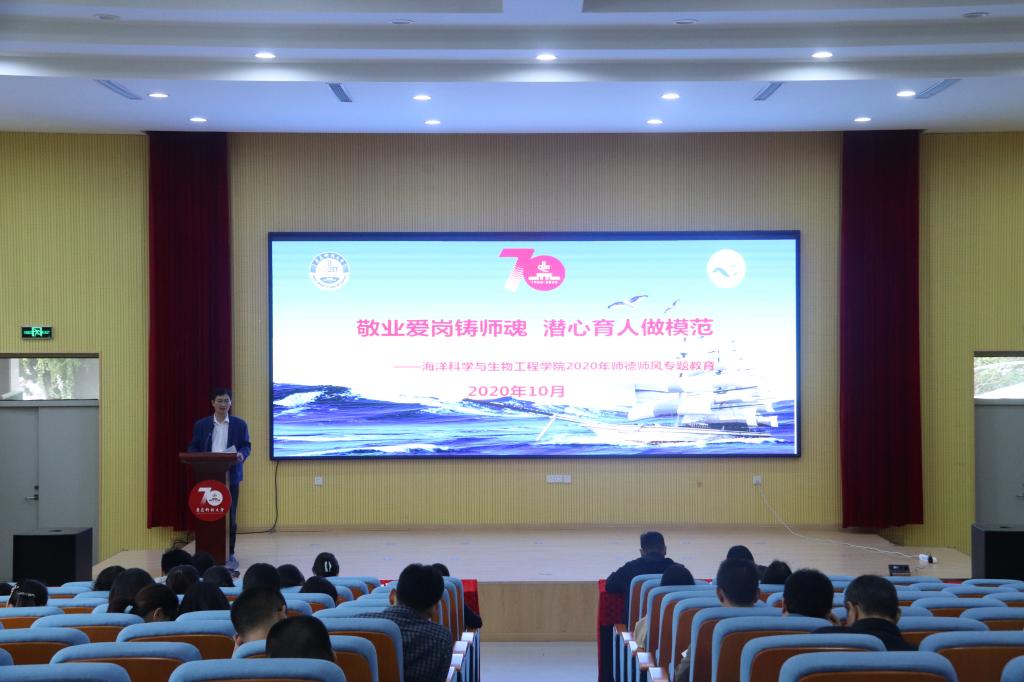 10月6日下午,必赢线路检测中心在尚舜讲学厅开展“敬业爱岗铸师魂,潜心育人做模范”2020年师德师风专题教育,学院党政领导班子及全体教师参加。党总支书记周宪锋主持活动。