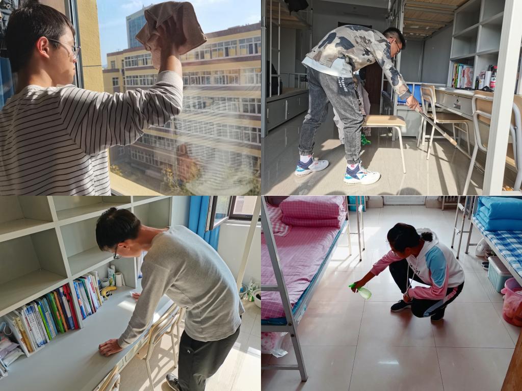 本次大扫除包括学生宿舍及教师办公室。各年级学生(含研究生)组织清扫宿舍,清理干净废旧物品,用84消毒液进行消毒。教师办公室和楼道同步进行卫生清洁。