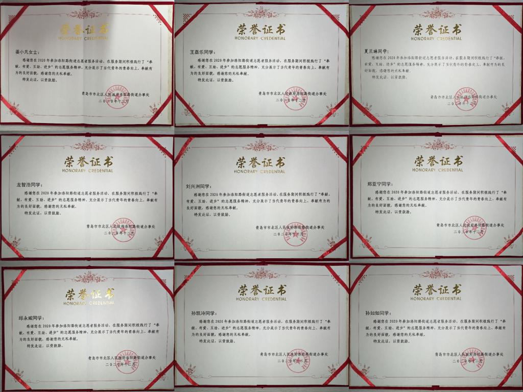 近日,15名海洋学子受到志愿服务表彰,洛阳路街道为参与志愿服务的学生颁发志愿服务表彰证书。
