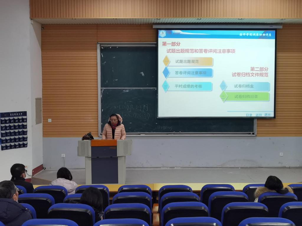 此次讲座围绕规范试卷拟题、试卷归档工作中应注意的事项等内容展开,强调了试卷归档的严肃性和重要性,为学院老师点明了试卷归档不足和误区,为学院的今后教学工作打下坚实基础。