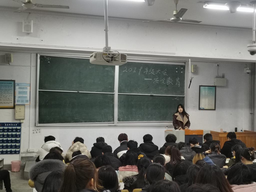 1月15日,2019级在三教204召开年级大会,部署寒假安全教育工作。2019级学生通过线上线下方式参加年级会,会议由2019级辅导员姜小凡主讲。