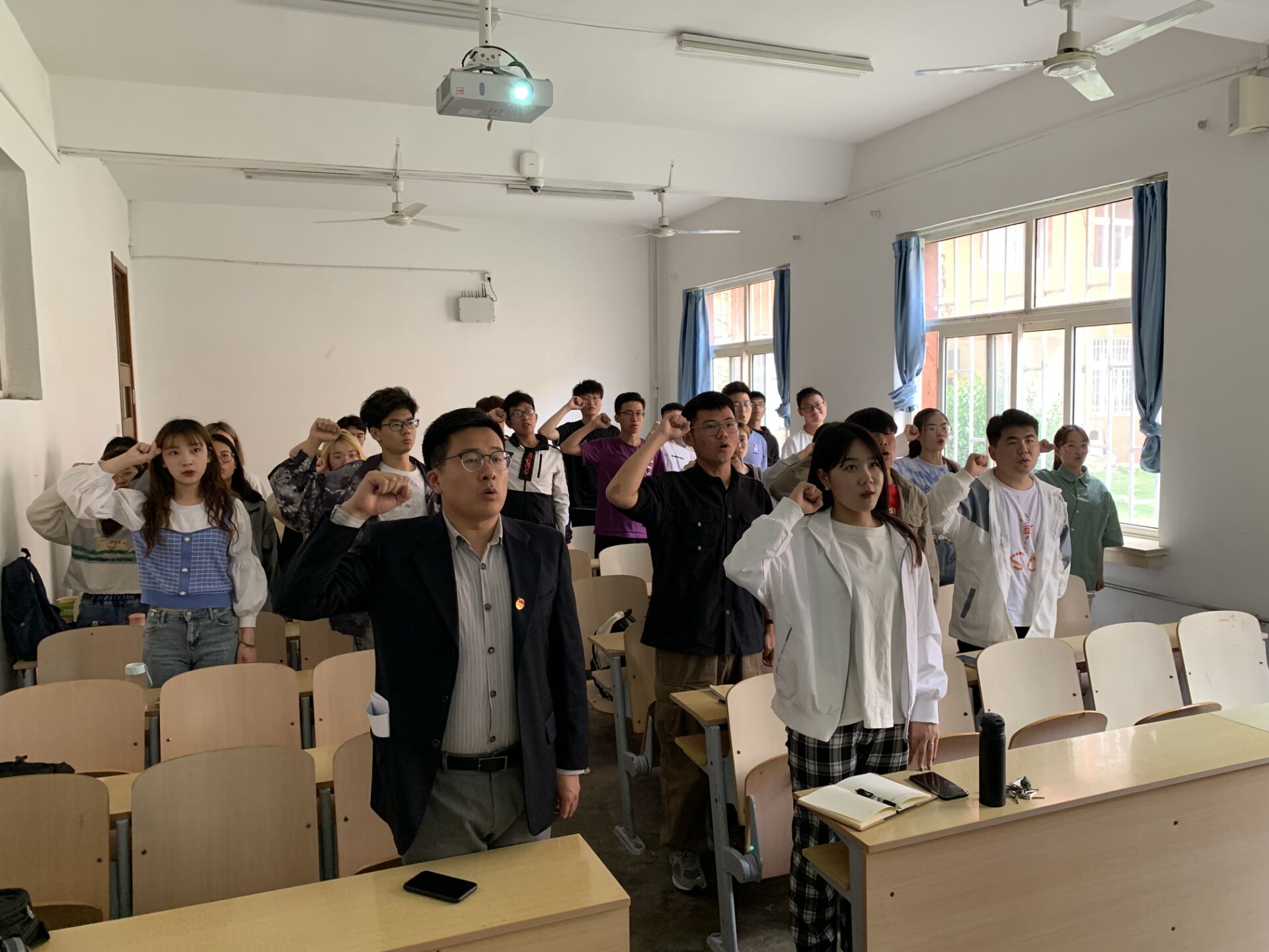 团员青年们在团支部副书记赵越的带领下重温入团誓词。