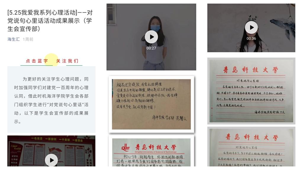 打开心扉诉真情,对党说句心里话。为更好的关注学生的心理问题,有针对性地为学生解决心理困扰,我院结合建党100周年主题,以学生会各部门牵头组织“对党说句心里话”主题活动,带动学院同学将对党的感情抒发在一句句话语中,表达自己对党的热爱。
