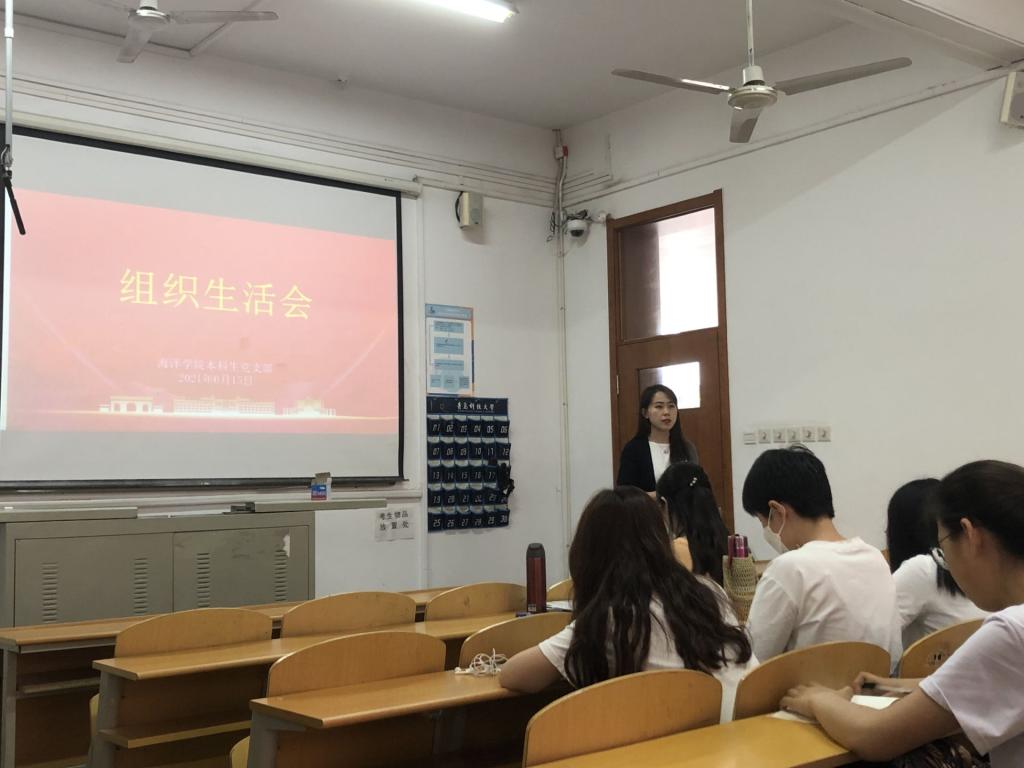 6月15日下午,我院本科生党支部于二教220召开党史学习教育专题组织生活会,会议由支部书记刘金岭主持,全体党员参加。