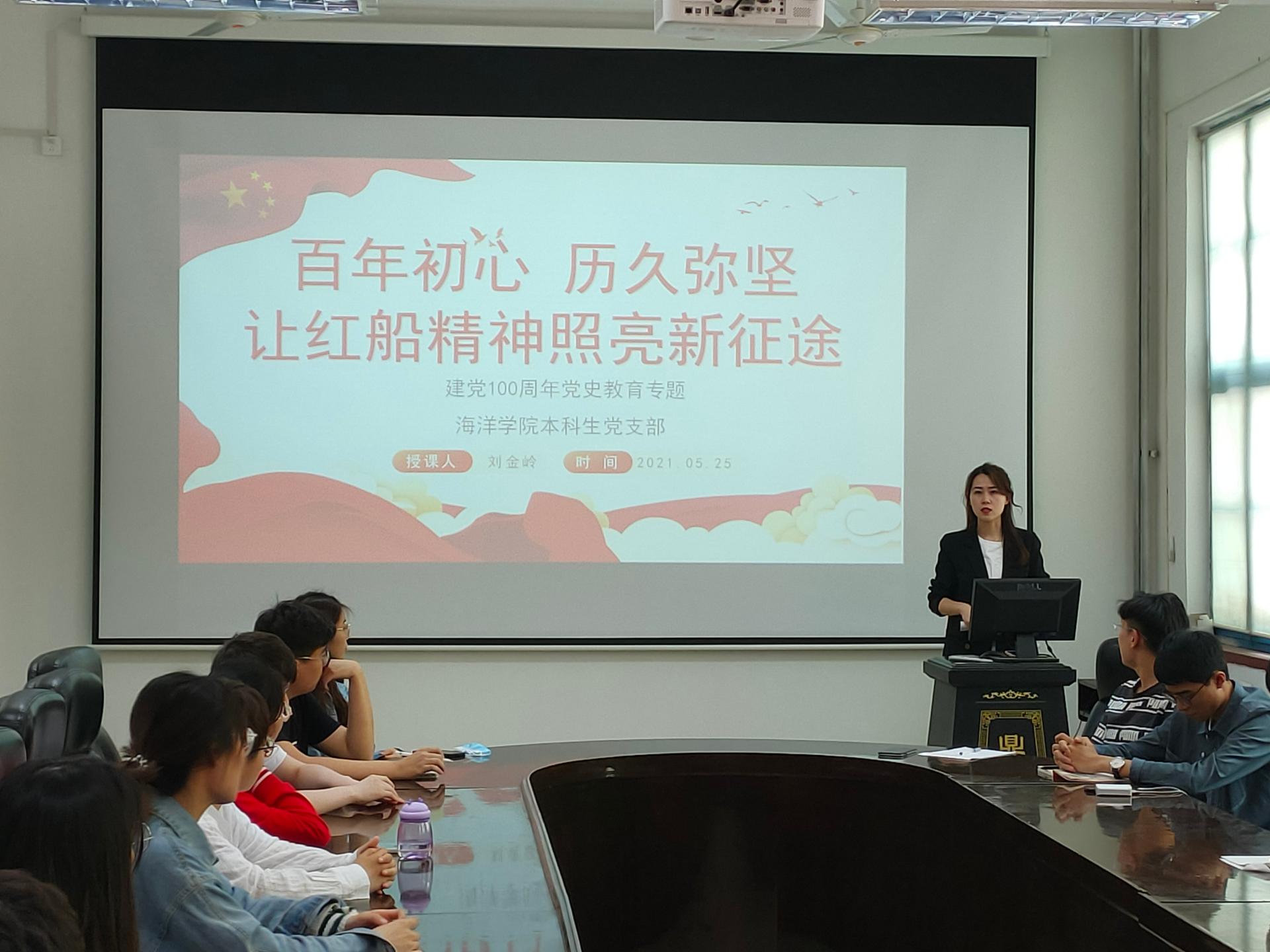 铭记百年党史,砥砺奋进前行。值此建党100周年之际,为更好地开展党史学习教育活动,5月25日,我院本科生党支部书记刘金岭在一政第二会议室以“百年初心历久弥坚让红船精神照亮新征途”为题为本支部全体党员讲专题党课。