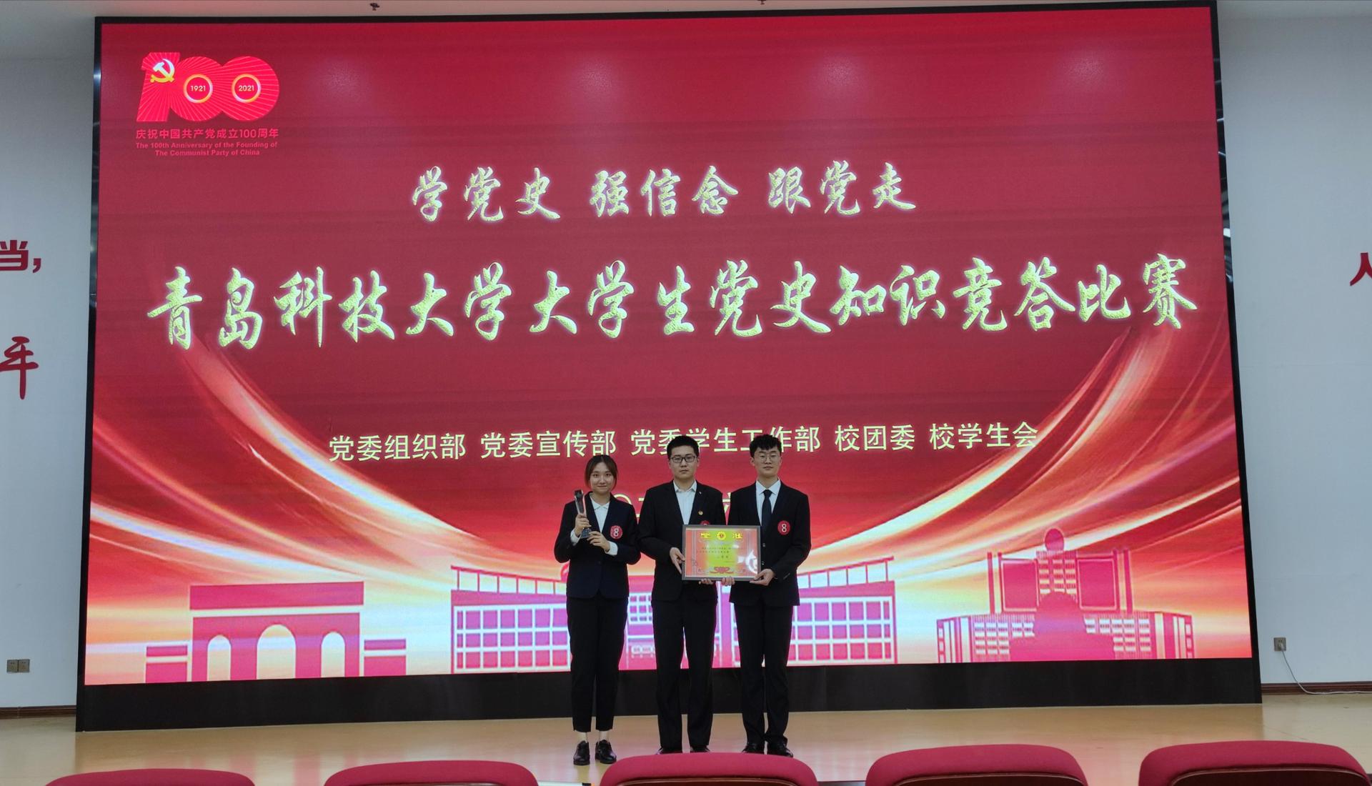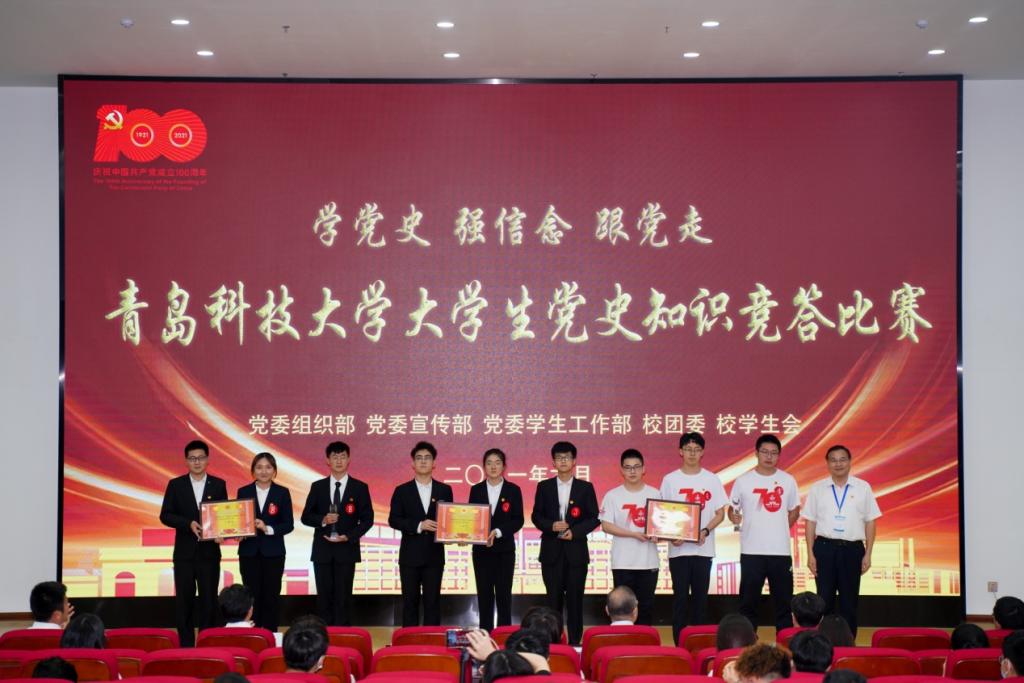 为庆祝中国共产党成立100周年,深入贯彻习近平总书记在“七一勋章”颁授仪式上的重要讲话,6月29日晚,我校“学党史 强信念 跟党走”大学生党史竞答比赛总决赛在崂山校区团学报告厅举行。党委常委、副校长丁林,党委常委、宣传部部长陈刚,党委正处级组织员孟照国,校团委书记毛常明,党委学生工作部副部长李华出席活动并为获奖团队颁奖,经过四个环节的激烈比拼,最终,我院代表队获得二等奖。
