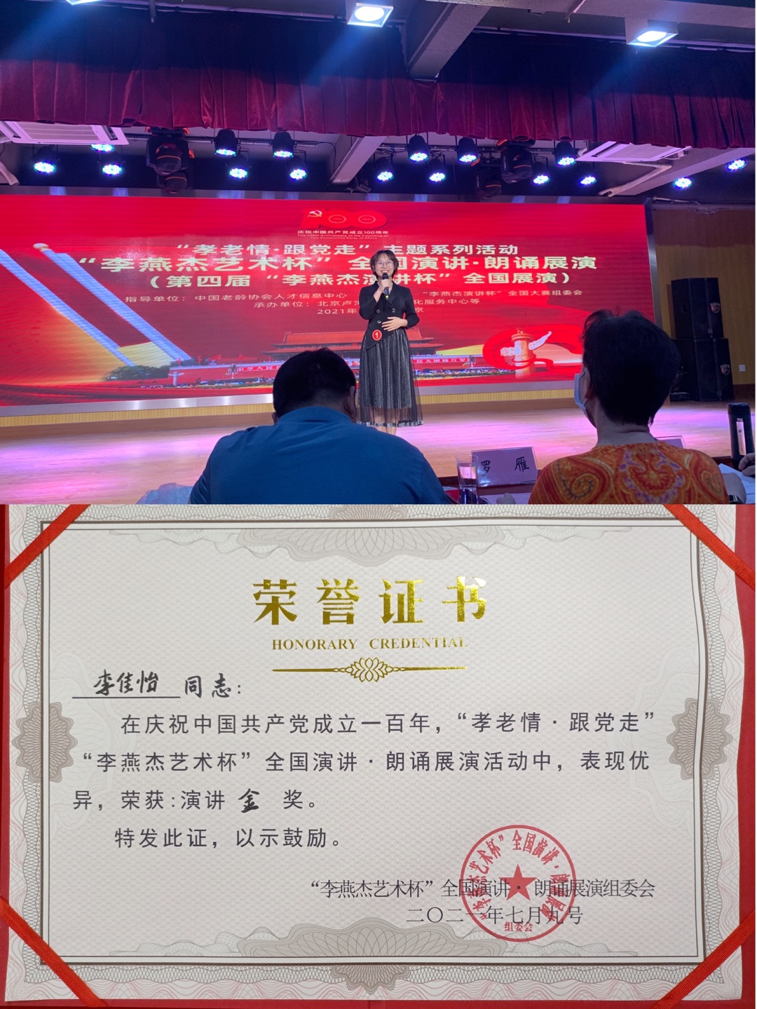 本次展演是第四届"李燕杰演讲杯"庆“七一”全国演讲、朗诵展演的一部分,经过复赛和全国演讲协会展演后,30多位选手进入决赛,通过演讲和朗诵两种形式,赞美伟大的中国共产党、赞美伟大的祖国。李佳怡以《我们为什么想入党》为题,表达了青年大学生的真切愿望,那就是“做中华民族好儿女,做共产主义事业接班人!”展现了青年大学生知党恩、听党话、跟党走的爱国之情和报国之志。
