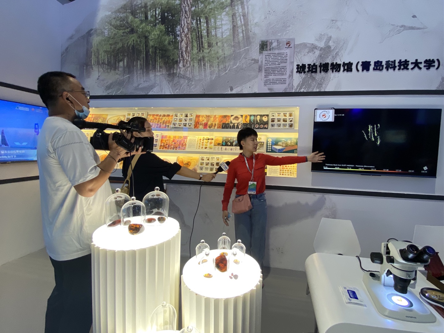 青岛科技大学王硕教授团队代表青岛展区于此次文博会参展,充分利用了山东文旅融合展示的窗口,与全国文旅企业达成广泛合作,产生了系列提振效应,使得青岛市、青岛科技大学融于“一带一路”的脚步变得更加铿锵有力。会上,项目接受了山东商报、青岛市广播电视台、半岛都市报等多家媒体采访。文旅融合风劲帆起,站在全球文旅发展的舞台,进化生物学团队借由此届展会给观众带来了丰富多彩的琥珀文化旅游体验,为文旅融合交上了一份圆满答卷。
