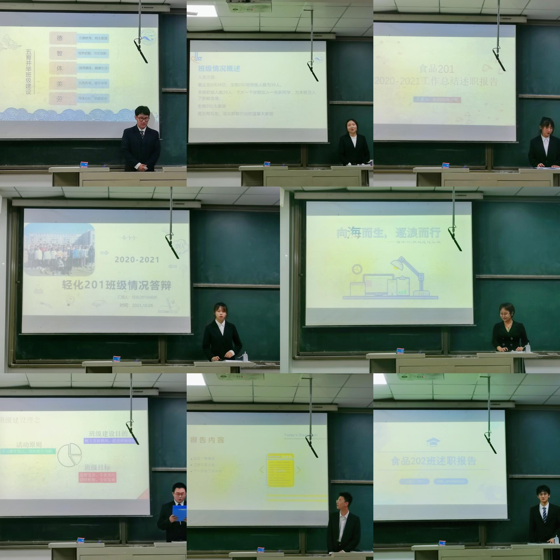 参与答辩的共有8个班级,各个班级总结上一学年的工作,结合答辩要求,以“德智体美劳”五育并举为中心,分别从思想建设、组织建设、文化建设和学风建设等方面进行汇报,总结了班级建设中的亮点、不足之处及改进措施,对今后的班级工作提出设想。各班级针对班级现状积极采取改进方法,例如班委的“一对一”、“一对多”的帮扶计划,班级自习打卡制度,“师徒”学习方式等来促进班级学风建设,以完成下一步工作计划和目标。