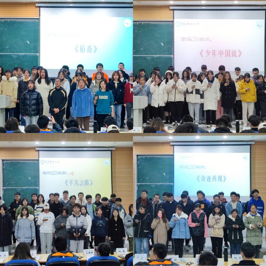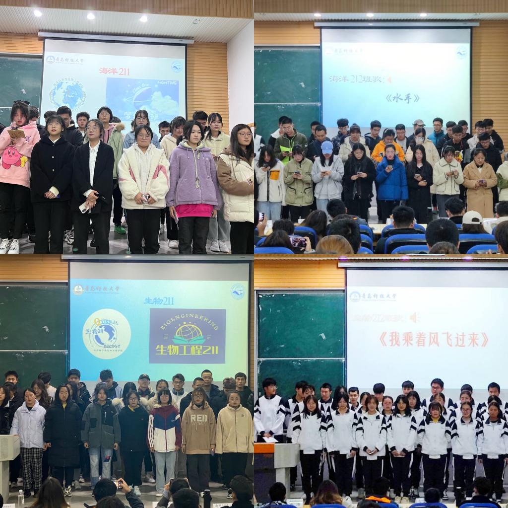 活动过程中,8个班级依次上台进行班级风采展示。各班汇报人结合ppt向各位老师和同学展示各班的班徽和班旗,并阐述班徽和班旗的寓意。紧接着,各班演唱本班班歌。班歌风格多样,歌声婉转悠扬,尽展风采,以歌声唱响了爱班荣班的主旋律,展现了班级团结一心与拼搏努力的青春力量,现场掌声不断。