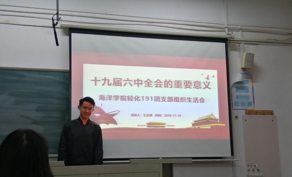 为深入学习和弘扬十九届六中全会精神,充分认识全会的重要现实意义和深远历史意义,提升我校学生的政治高度,海洋192团支部于11月22日组织开展“十九届六中全会专题学习”主题团日活动。