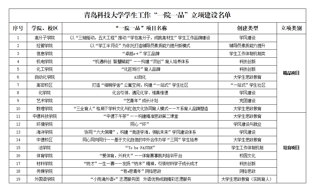 根据《关于开展学生工作“一院一品”培育创建的通知》(青科大学字〔2021〕40号)要求,我院高效部署、精心准备、积极申报,高质量完成品牌创建凝练和项目书提报工作。经学校评审,我院学风建设项目《协同“六大保障”,构建“竞逐学海,领航未来”学风建设体系》被确立为培育项目。