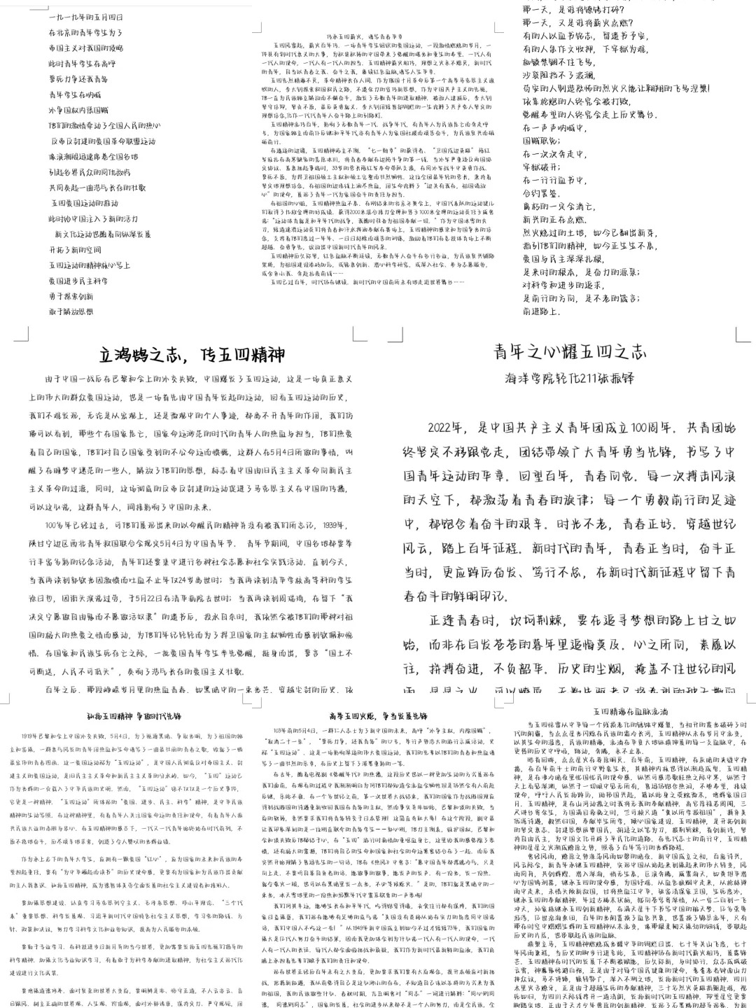 学院组织学习百年团史“传承红色基因,感悟伟大成就”主题征文活动,学生们结合党史团史学习的深刻体会和对五四精神的深刻认识纷纷,写下自己的体会,广大海洋青年学生用文字形式回顾共青团岁月的百年光辉历程,书写青年学生勇立时代潮头、不负历史使命的担当。