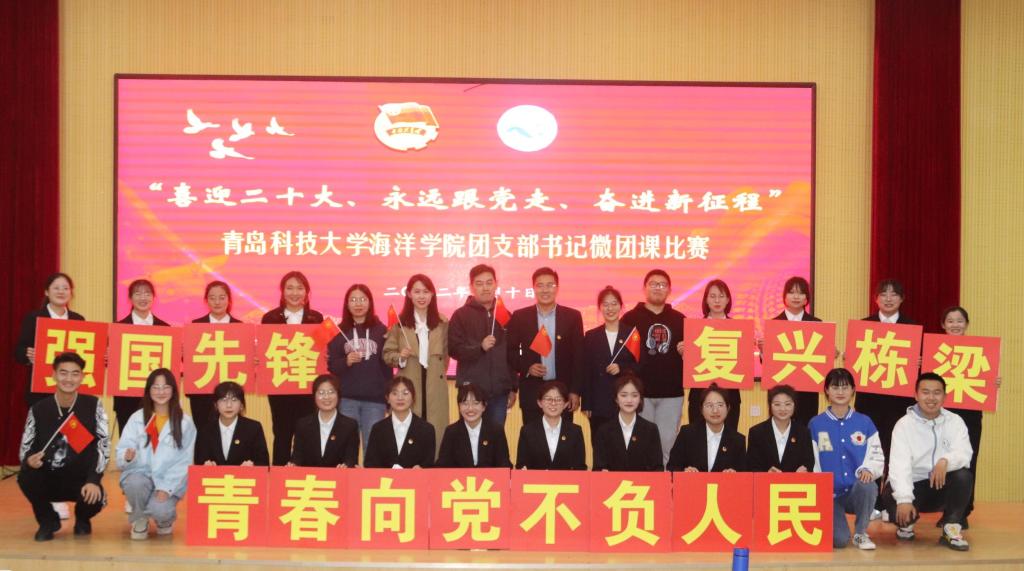 为认真学习贯彻习近平总书记在庆祝中国共产主义青年团成立100周年大会上的重要讲话精神,庆祝中国共产主义青年团成立100周年,迎接党的二十大胜利召开,5月10日晚,青岛科技大学我院举办“喜迎二十大、永远跟党走、奋进新征程”主题微团课比赛。