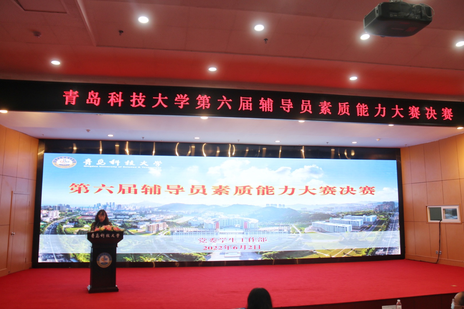 6月2日下午,学校第六届辅导员素质能力大赛决赛在崂山校区英科报告厅举行。校党委常委、副校长丁林出席活动。第七届全国高校辅导员素质能力大赛三等奖、山东省特等奖获得者,中国石油大学化学院团委书记窦雅琴,学校党委组织部、党委宣传部、党委学生工作部、校团委等相关负责同志担任比赛评委。