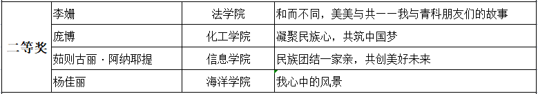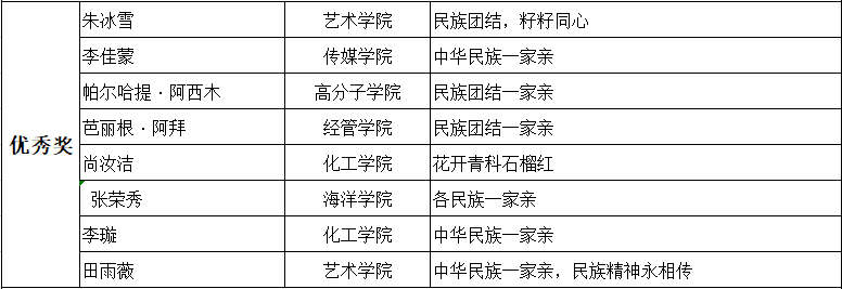 根据《2022年第四届“民族团结一家亲”主题活动的通知》(青科大学字〔2022〕9号)要求,我院积极组织,号召学生参与活动。经学院(校区)推荐、资格审核、学校评审,我院轻化211班杨佳丽荣获“讲好民族团结故事 铸牢中华民族共同体意识”征文比赛二等奖、生物212班张荣秀荣获优秀奖;我院学工办主任兼团委书记李浩荣获“征文比赛优秀指导老师”。