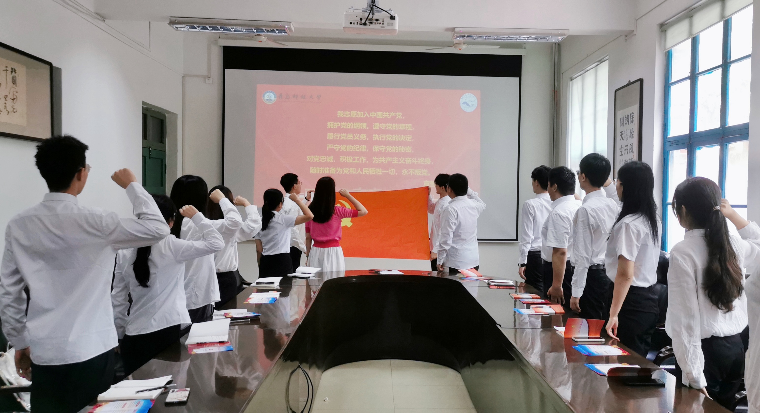 重温一次入党誓词。全体成员庄严举起右拳,重温入党誓词,字字铿锵有力、掷地有声,点燃建功新时代的激情,切实把入党誓词嵌入思想,融入血脉、注入灵魂,永葆共产党人的政治本色。