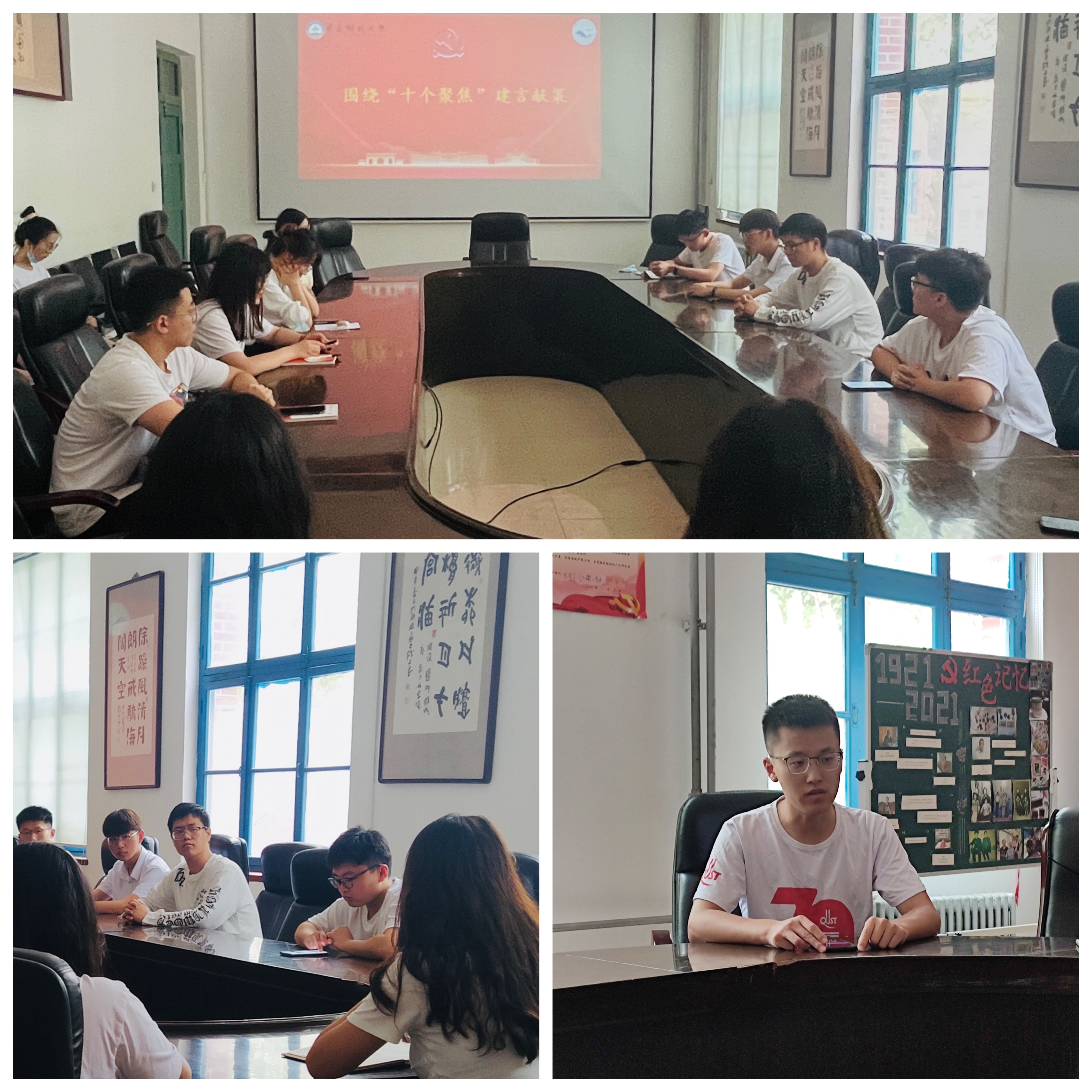 建言献策,汇智聚力。全体党员根据学校指示工作,关于开展“喜迎党代会 谱写新篇章”建言献策活动,围绕“十个聚焦”,坚持目标导向、问题导向、过程导向、效果导向,明确优势、认清短板,分别就本科生培养模式、校园文化建设、加强科研交流以及积累实践经验等方面提出意见建议、对策思路,以实际行动迎接学校第十一次党代会。