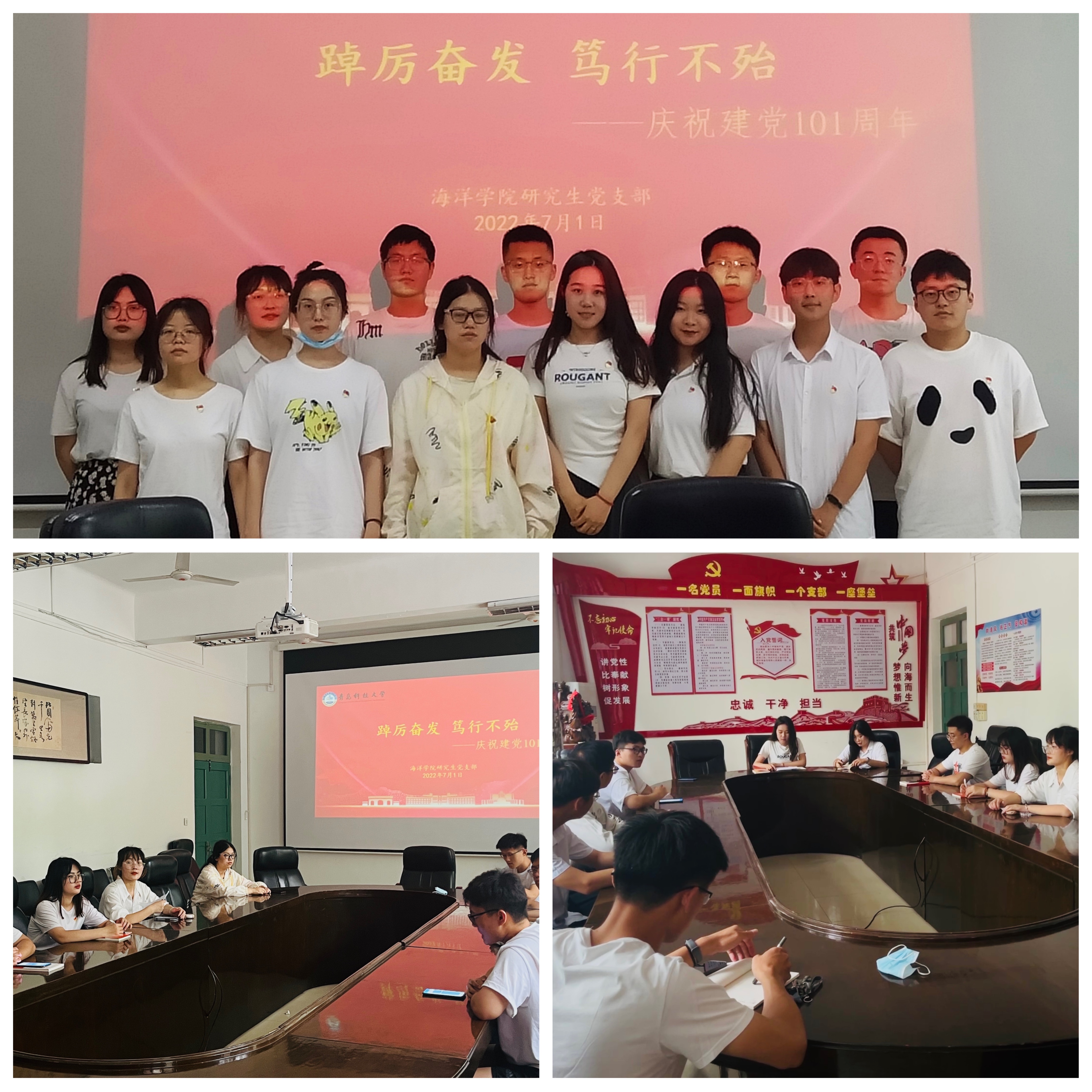 为庆祝中国共产党成立101周年,喜迎党的二十大胜利召开,我院研究生党支部组织全体党员于7月1日下午在我院会议室举行“踔厉奋发笃行不殆”主题党日活动,以表达感党恩、跟党走的决心和信心。