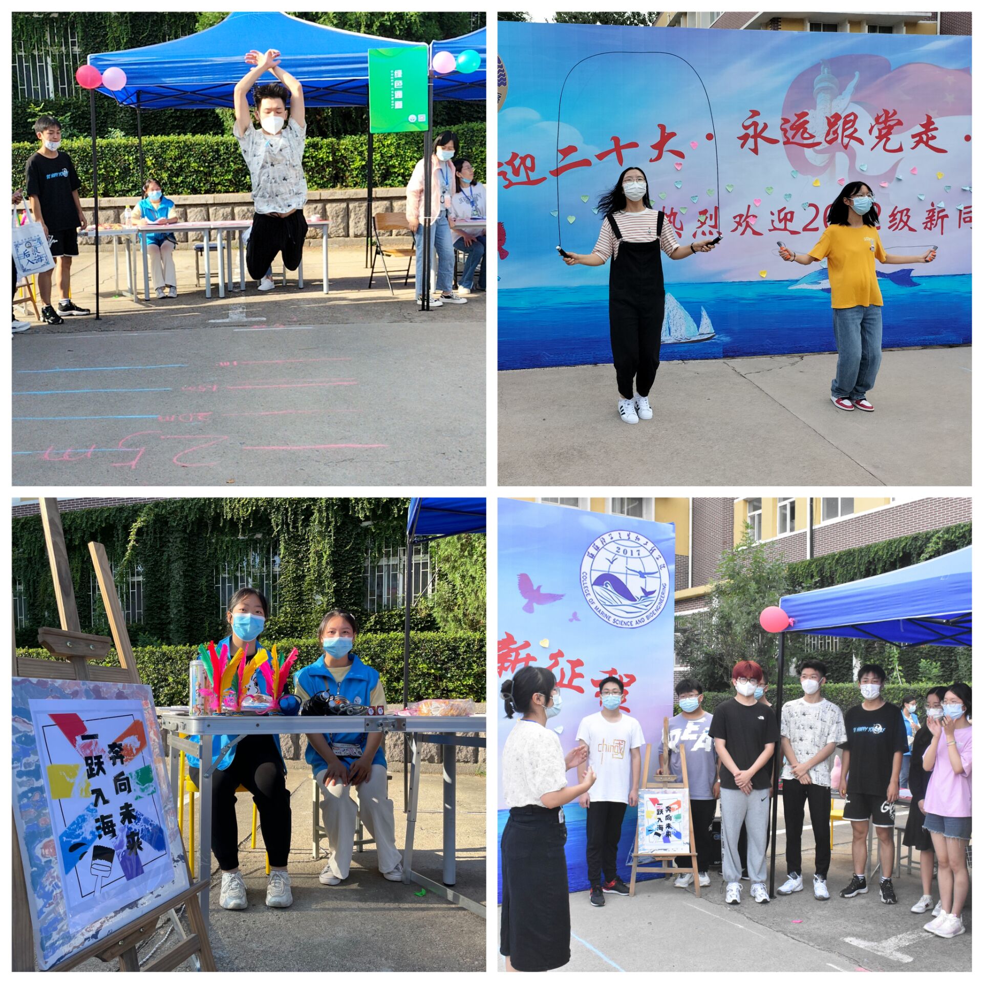 “一跃入海,奔向未来”。在全校深入开展体育综合改革之际,学院在迎新现场组织新生进行跳远、跳绳体验,并为表现出色同学设置精美奖品,通过趣味性的运动比赛,为新生宣讲学校体育综合改革政策,鼓励新生加强锻炼,强健体魄。
