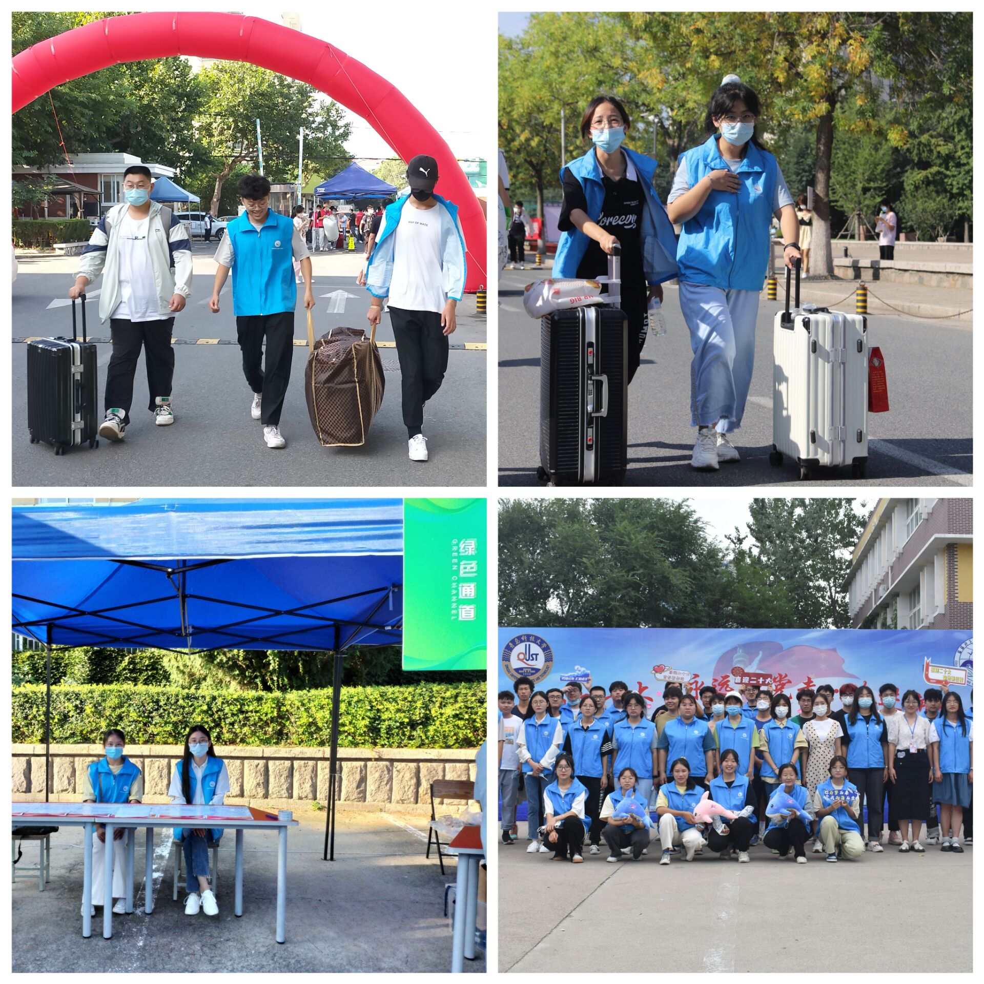 因疫情防控需要,新生家长无法入校,学院安排“小浪花”志愿者一对一志愿服务,每位新生至少有一位学长学姐协助搬运行李。迎新现场,“小浪花”们接力行动,与新生们一一对接、分发迎新礼包,并引导新生入住宿舍,完成入学报到。除此之外,对于新生对大学生活的展望、疑惑,志愿者们耐心为之解答,以“新”迎新,以“老”带新,切实发挥学生间朋辈引领传帮带作用。身着蓝色马甲的“小浪花”们奔波在校园之内,他们的身影成为迎新当天一道靓丽的风景线,充分体现了我院以人为本的价值关怀,也展现了海洋学子友爱互助的精神品格。