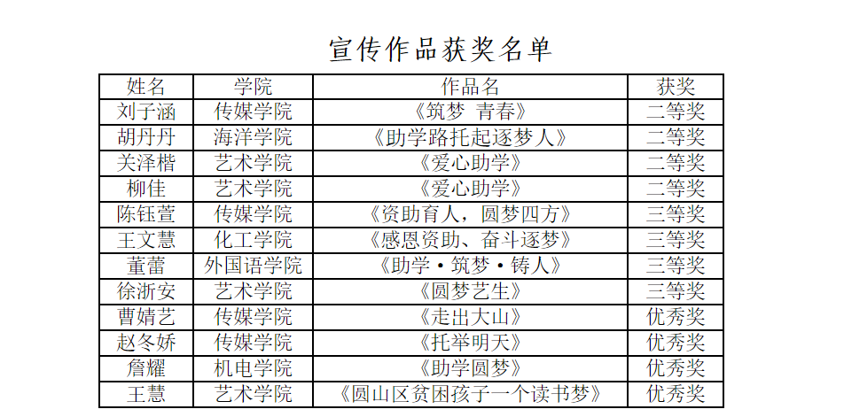 根据学校《关于开展2022年学生资助育人系列主题活动的通知》要求,我院积极组织,号召学生参与活动。经学院(校区)推荐、资格审核、学校评审,我院生物212乔雨晴荣获主题征文一等奖 ,生物212安少东荣获主题征文三等奖 ,生物212胡丹丹荣获宣传作品二等奖。