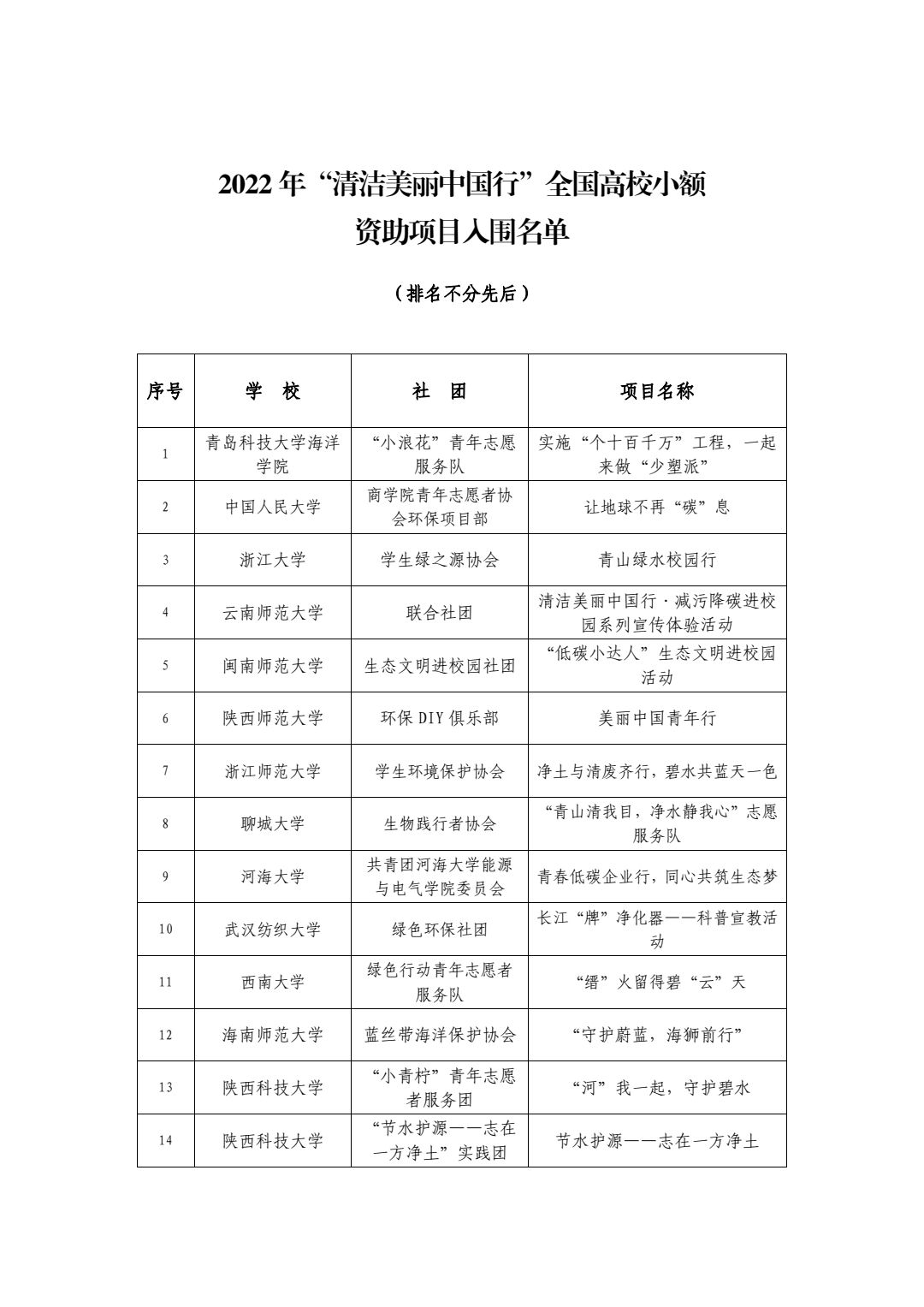 【海洋荣誉】我院入围2022“清洁美丽中国行”全国高校小额资助项目