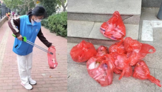 一到目的地,小浪花志愿者们便忙碌起来,在社区管理人员的带领下大家拿上工具,分头行动。志愿者们手拿垃圾袋、扫帚、铁夹等工具,分工合作,认真清理草丛里的泡沫箱、塑胶袋等垃圾,并进行垃圾分类。