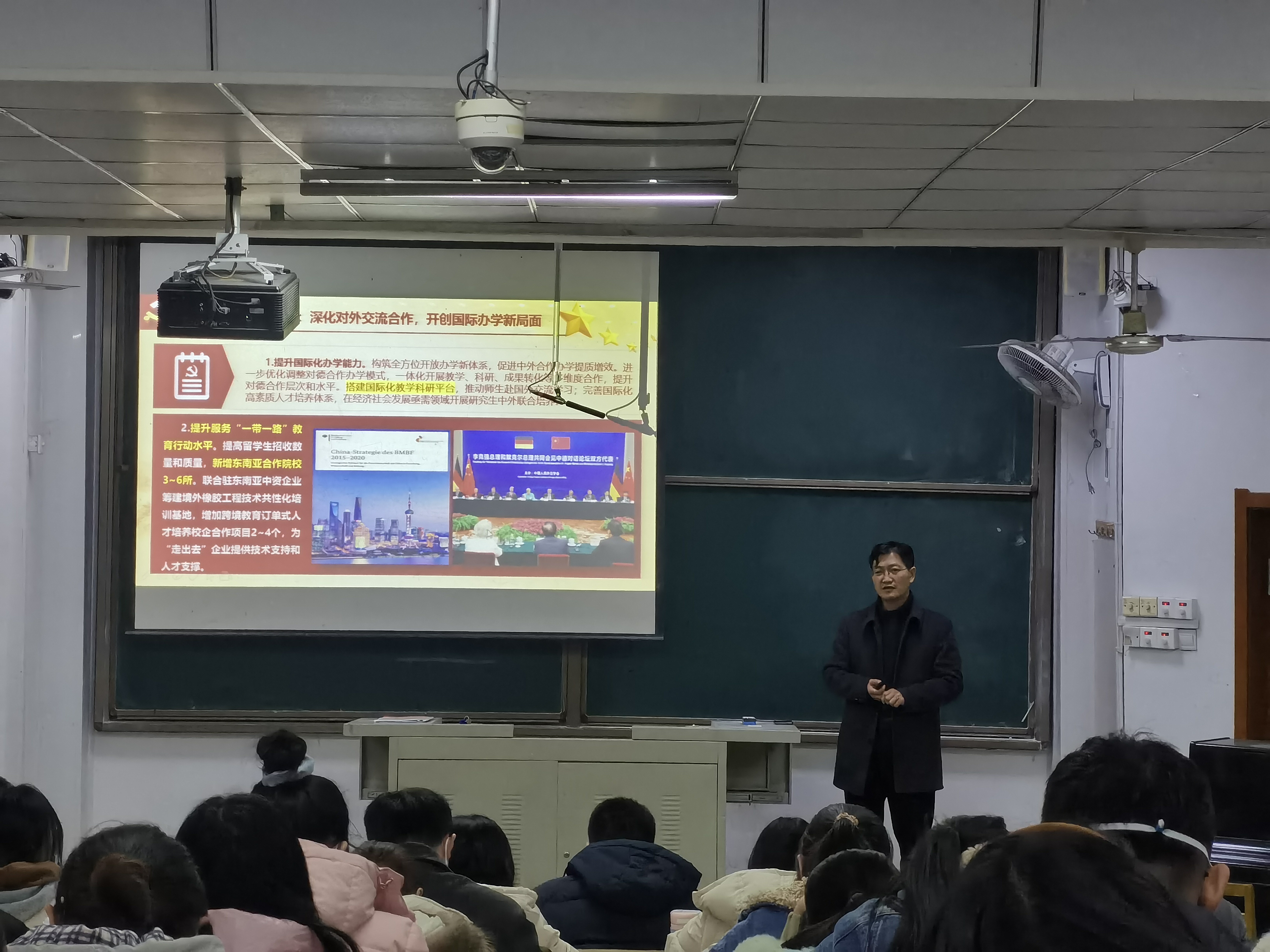 为深入学习贯彻党的二十大精神,引导学生党员深刻感悟思想伟力、准确领会精神实质、把握核心要义,11月29日下午,我院党总支书记周宪锋讲授了一堂以“迈上新征程,奋进新时代”为题的专题党课。学院本科生党员、研究生党员、2022级和2021级团员代表参加了本次党课学习。