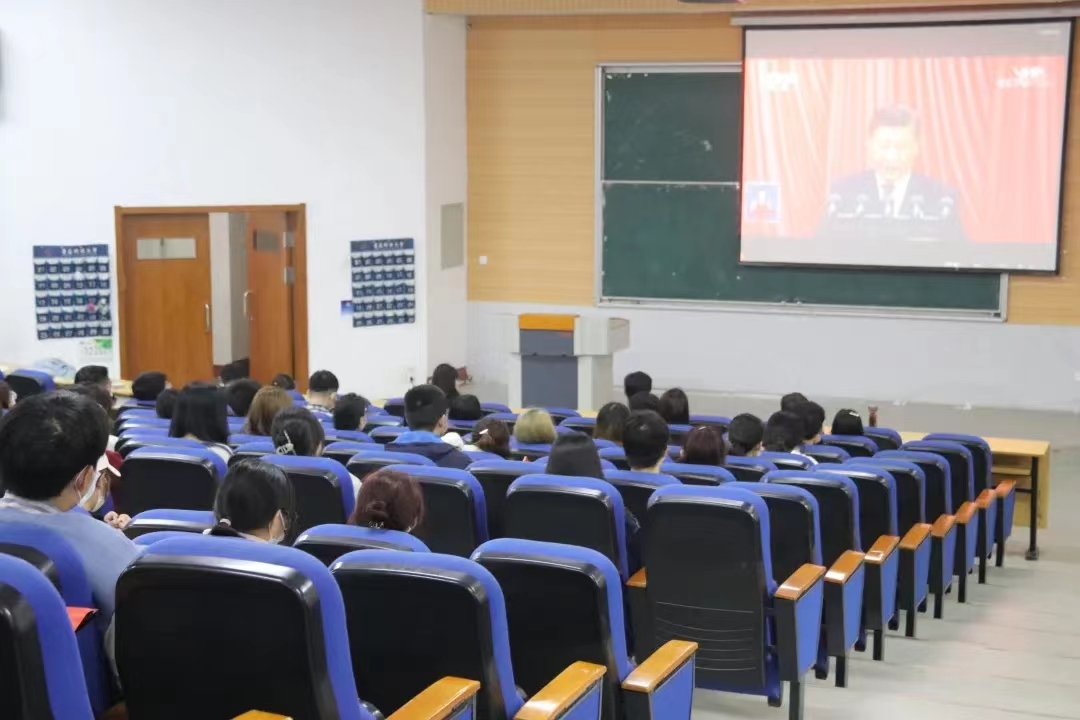 10月16日,按照大会日程安排,我院组织师生党员代表统一于二教101进行观看学习。同时,各班级以团支部为单位通过多个会场同步收看会议直播,学习习近平总书记代表第十九届中央委员会向党的二十大所作报告。