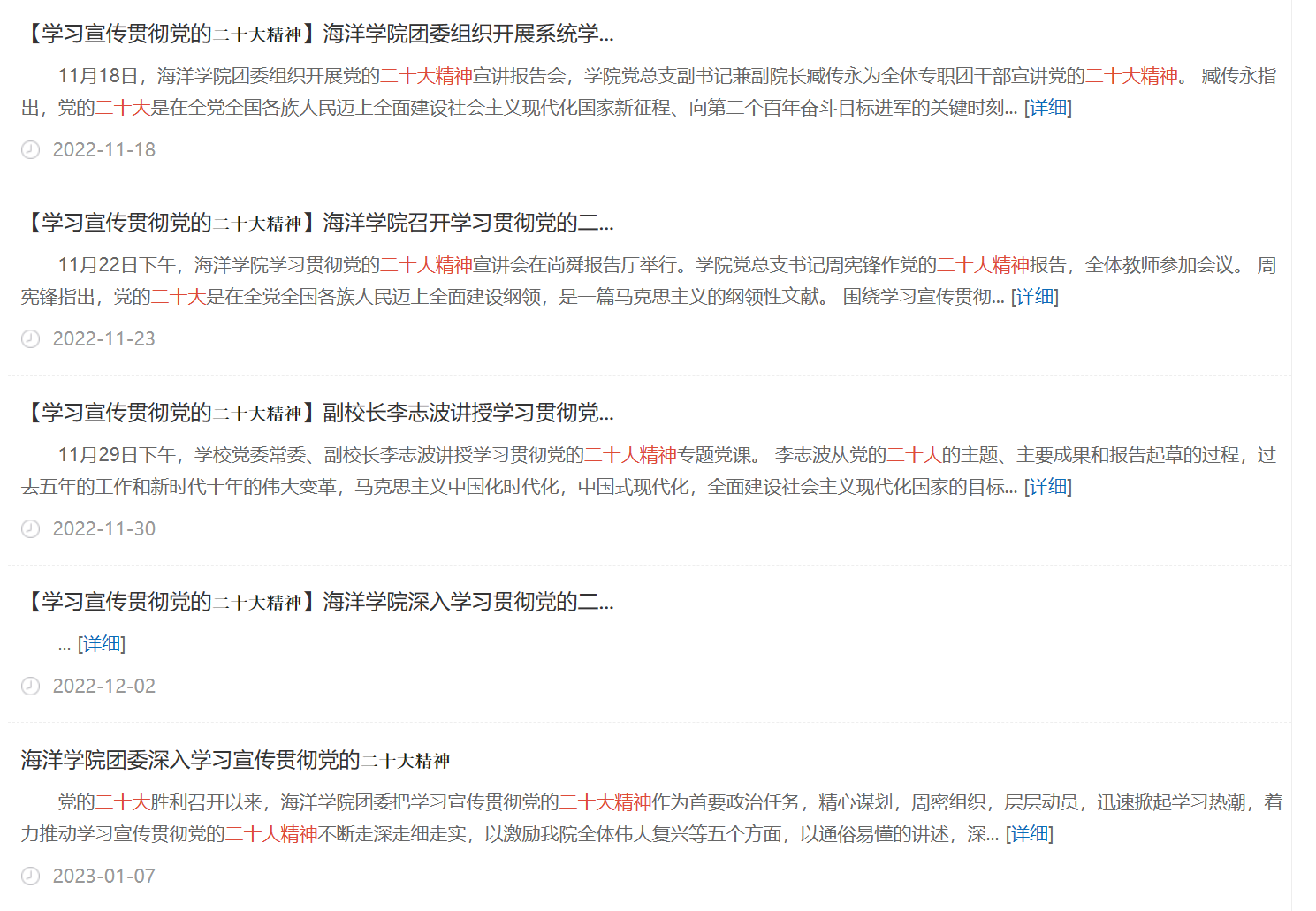 我院团委深入学习贯彻习近平新时代中国特色社会主义思想和党的二十大精神,深入学习习近平总书记在庆祝建团一百周年大会上的重要讲话精神和《论党的青年工作》,用好《习近平与大学生朋友们》一书。学院党总支书记周宪锋、团委书记李浩、专职团干刘金岭等专职团干带头宣讲党的二十大精神,引导全院党员及学生干部切实把思想和行动统一到党的二十大精神上来,让学习宣讲真正入脑入心,在全院上下营造浓厚的学习宣传党的二十大精神氛围。