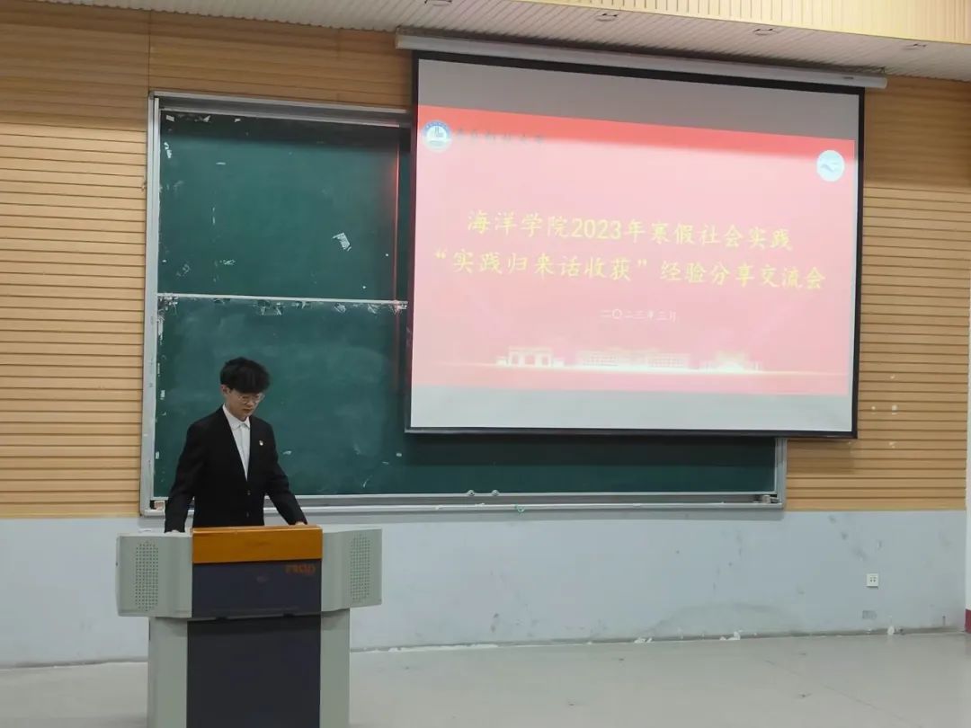 为全面贯彻落实党的二十大精神,系统梳理社会实践成果,交流分享经验收获,引导和帮助广大青年学生上好与现实相结合的“大思政课”,在社会课堂中受教育、长才干、作贡献,坚定信念听党话、跟党走,我院于3月4日晚在二教101开展“实践归来话成长”社会实践交流分享会。会议由我院学生会主席团成员陆继远主持。